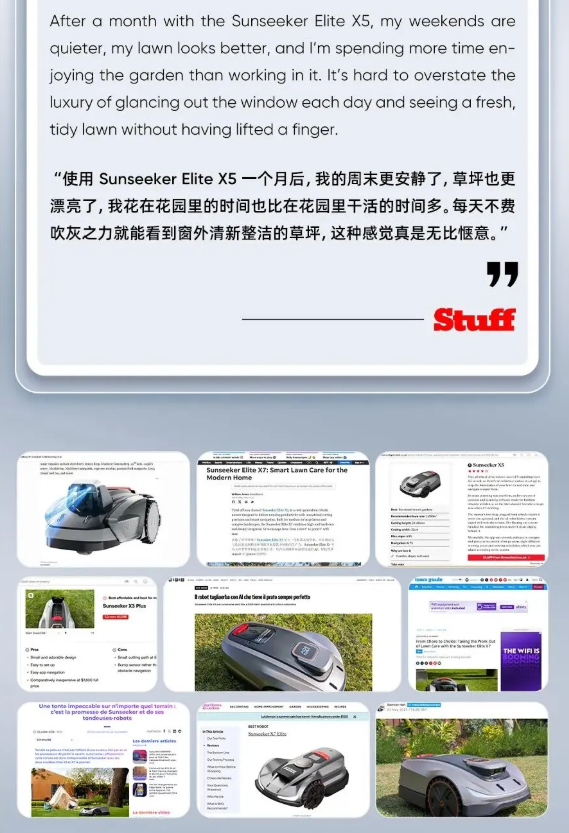 行业资讯 | 全球媒体点赞Sunseeker智能割草机器人